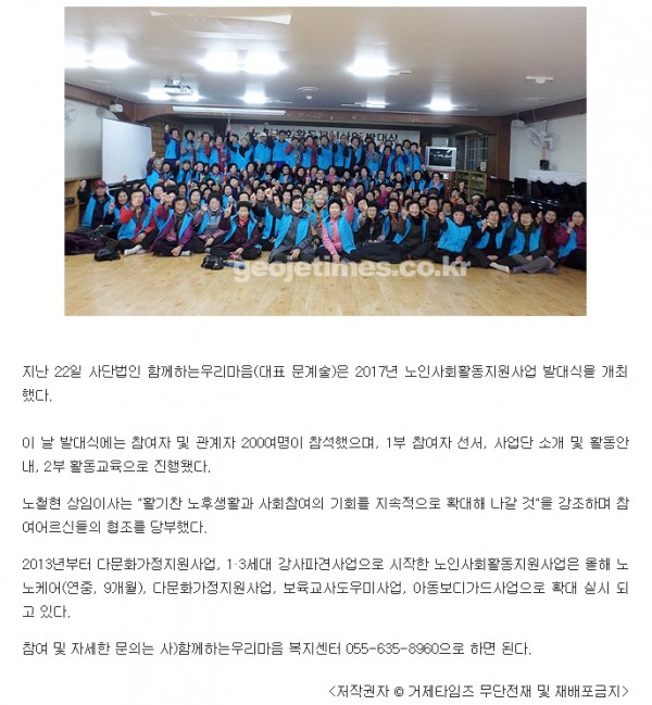 사)함께하는우리마음 복지센터 노인사회활동지원사업 발대식